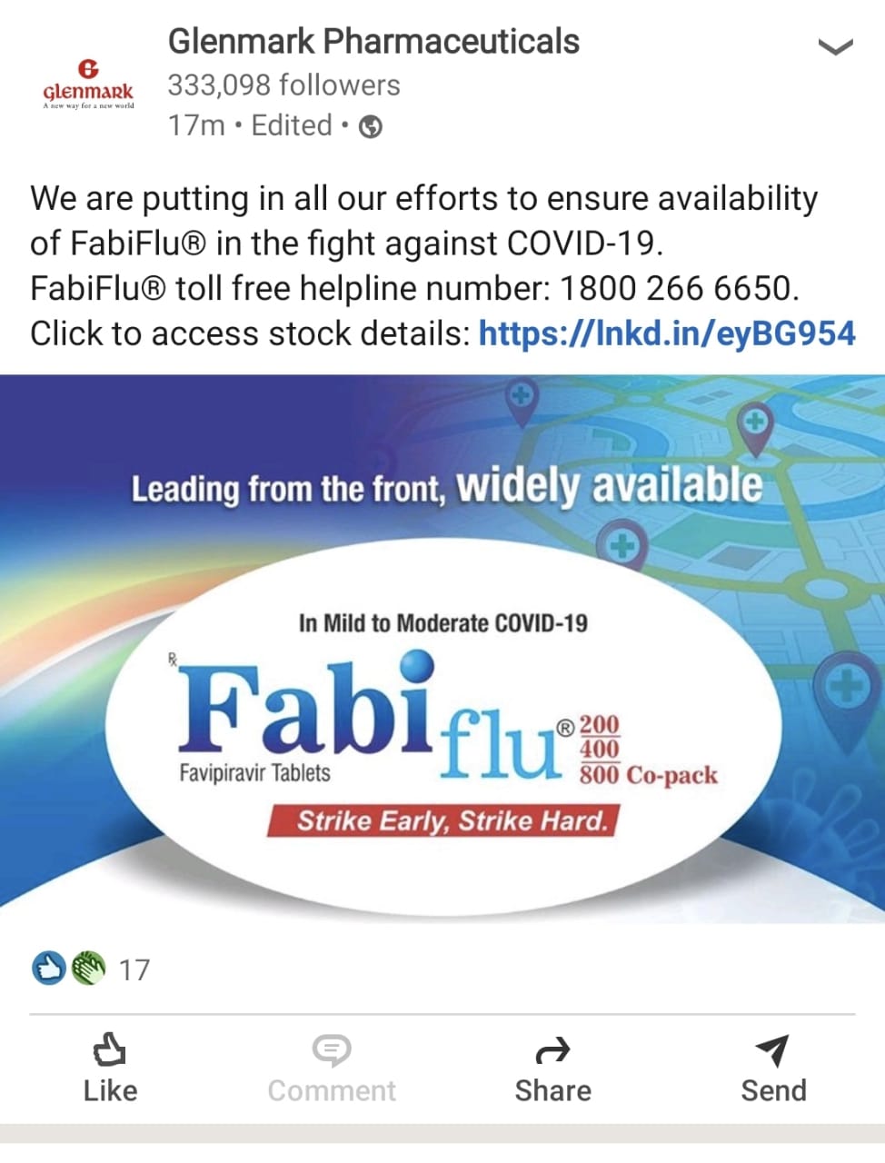 - Helpline Number given by Glenmark Pharmaceuticals for availability of Favipiravir-1800 266 6650